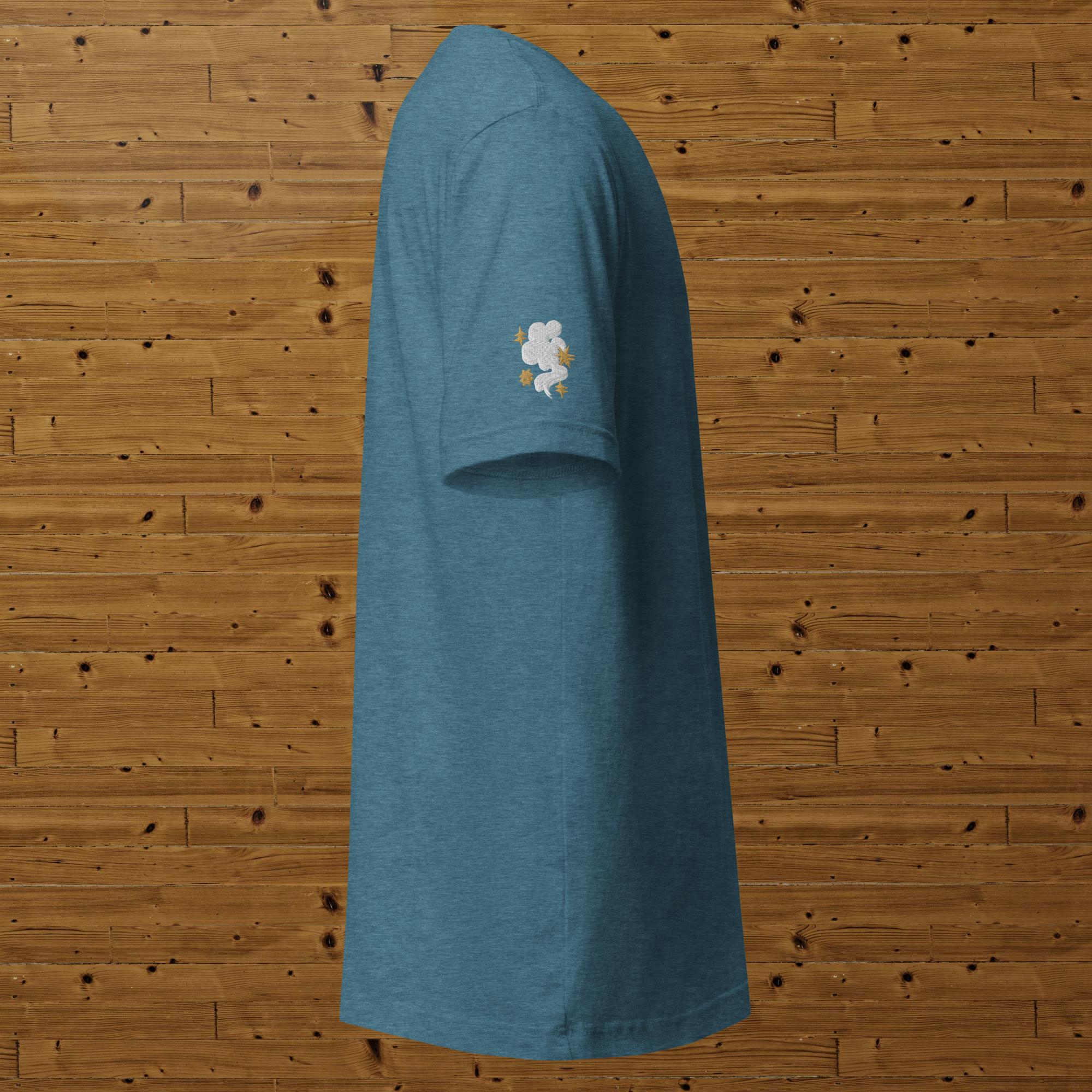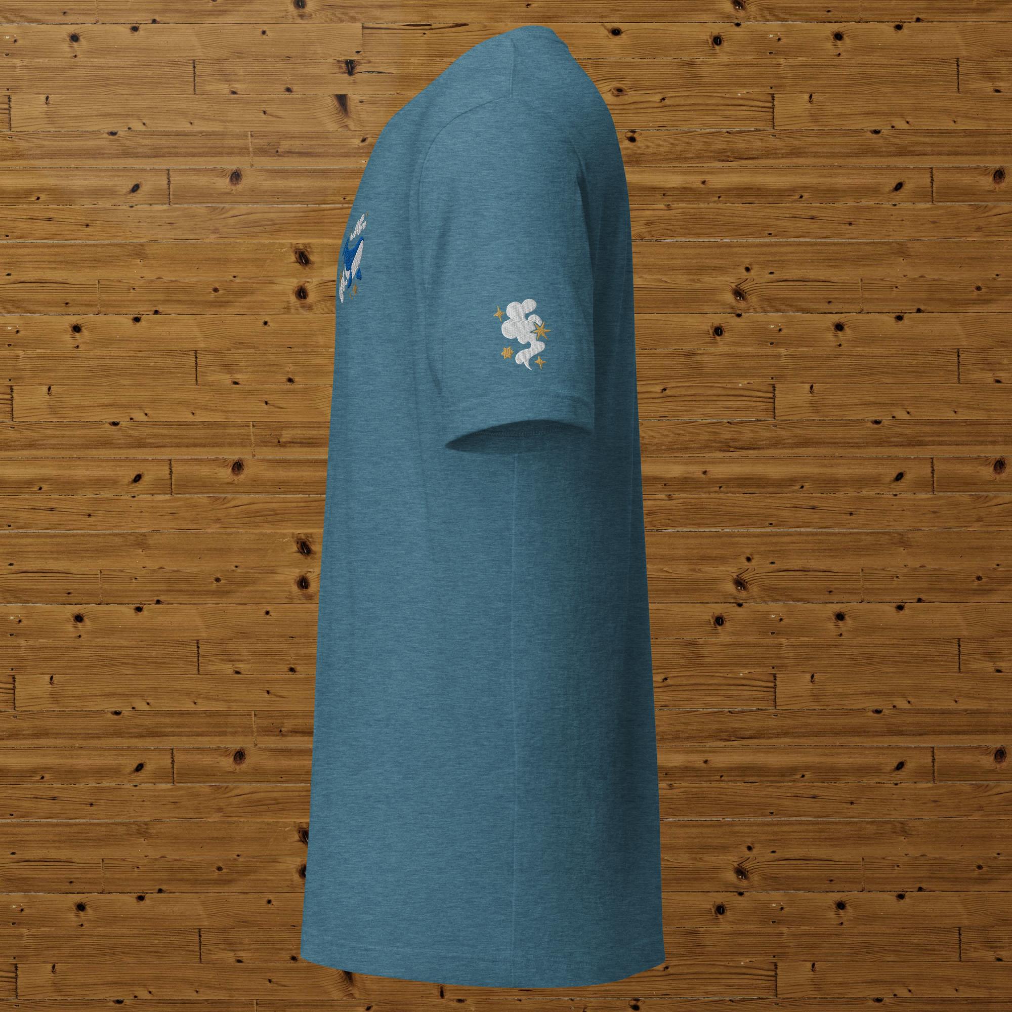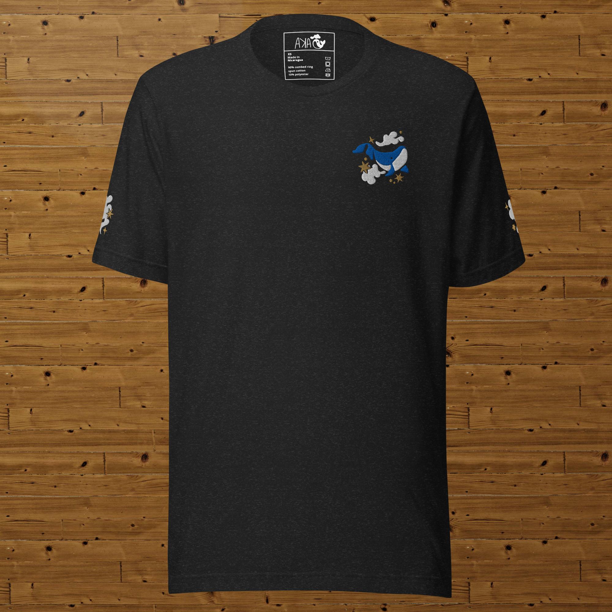 Germaine la Baleine flotte parmi les étoiles, apportant sérénité et douceur. Ce t-shirt, brodé sur les manches et la poitrine est très confortable, pour un look à la fois décontracté et original.